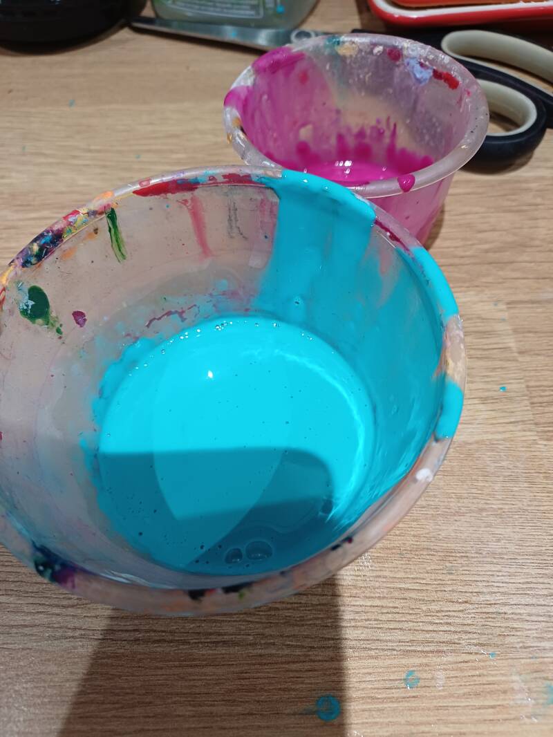 NB : You can see here the pigment was so vibrant ! I used the professional art studio series but you can use whatever you have to hand - just remember the more "watery" the paint the less medium you need as it may cause the colors to mix immediately and create a "muddy" look instead of distinct marble swirls - as I later found !
